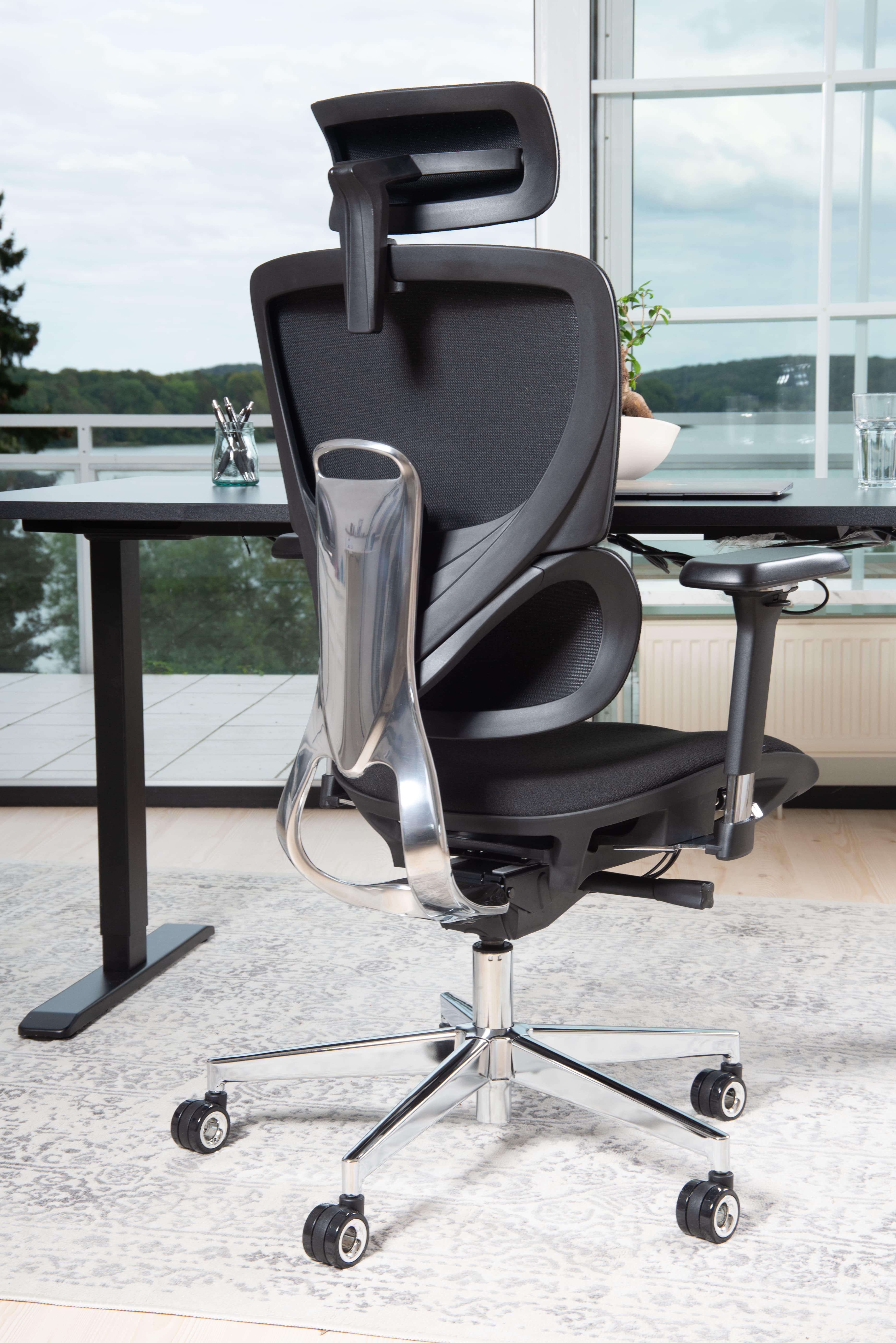 Die Kombination aus einem atmungsaktiven Mesh-Bezug und robusten Chrom-Metall Komponenten sorgt für langanhaltenden Komfort und eine erstklassige Qualität.