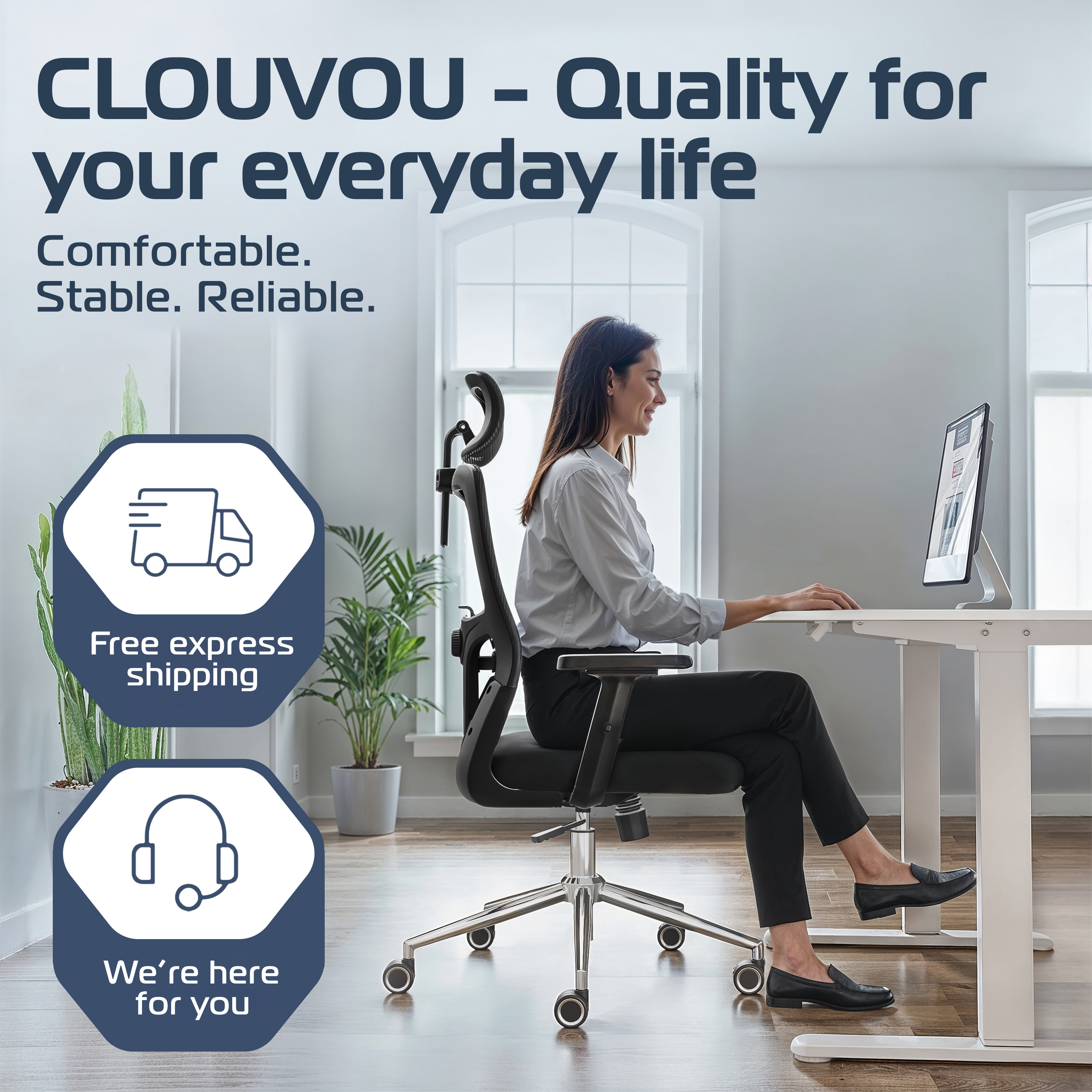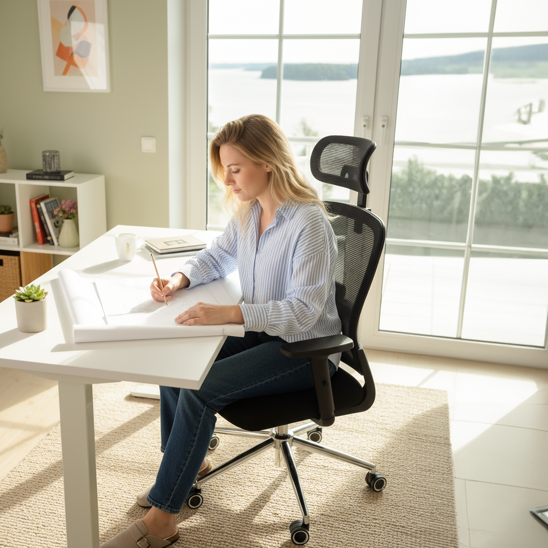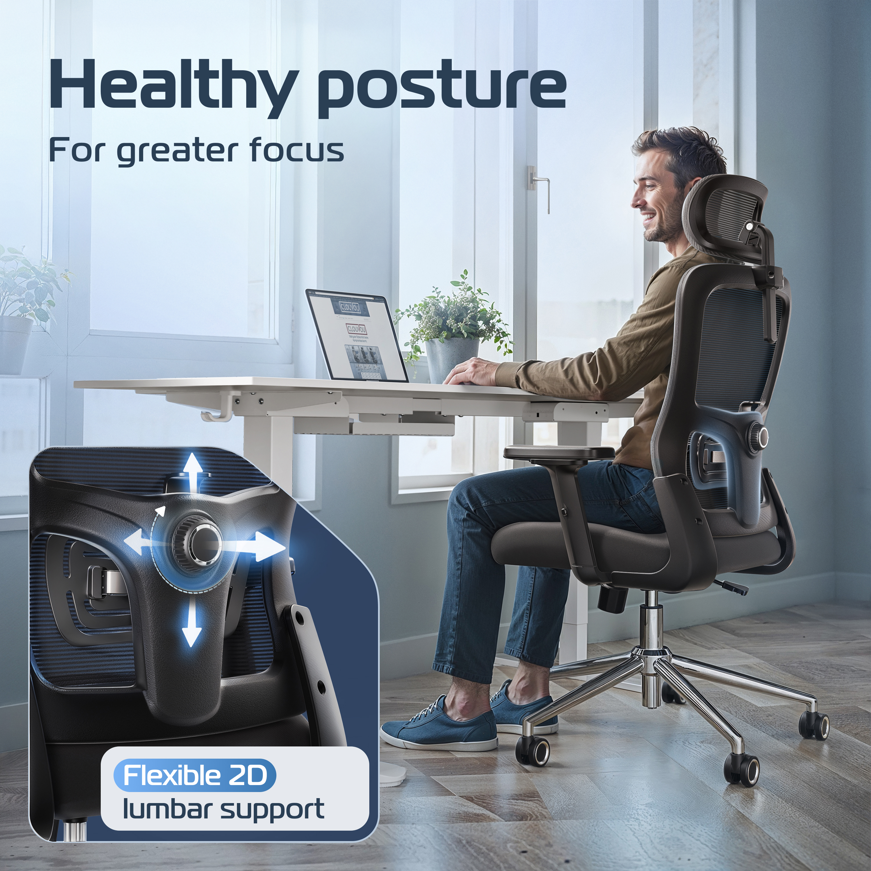 The adjustable headrest supports your neck perfectly, whether you’re working, in meetings, or leaning back. Feel the difference in just 30 minutes.